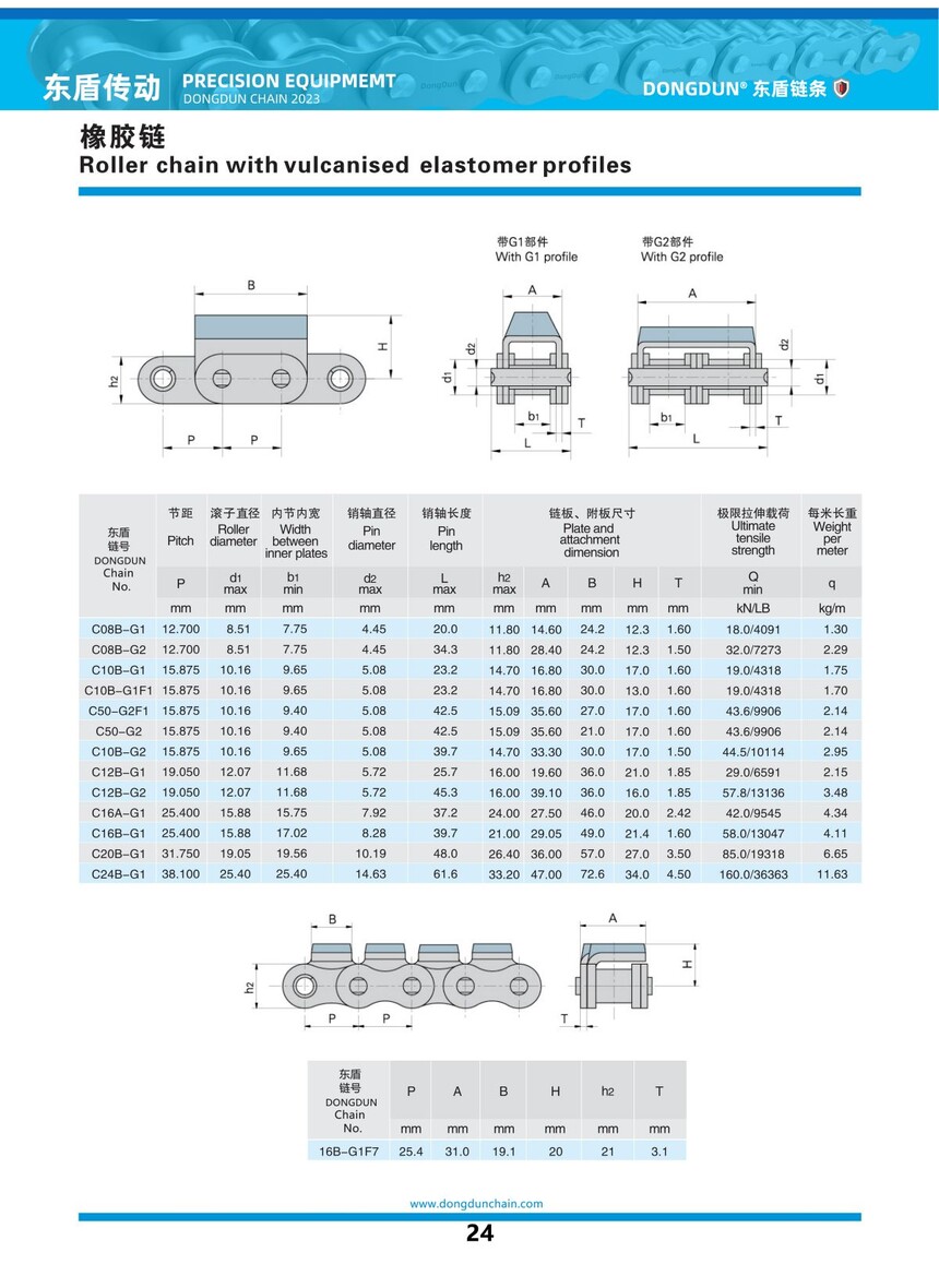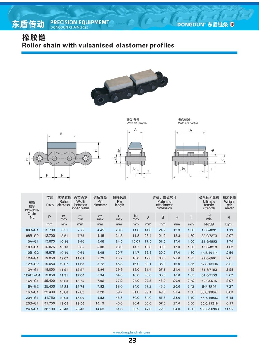 橡胶附板链是在标准短节距精密滚子链作为基链的基础上加装橡胶顶板的链条,基链符合ISO、ASME/ANSI、 DIN、JIS等标准。